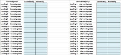 Stap 2: Sla de toetsresultaten van de leerlingen op een beveiligde plek op en zorg dat je noteert welke resultaten van leerlingen in de controlegroep zijn en welke van leerlingen in de interventiegroep.