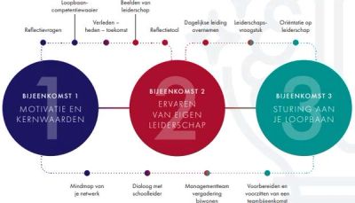 Er staan nog vier bijeenkomsten gepland om de inhoud van het traject toe te lichten en over te dragen aan de regio. De eerstvolgende bijeenkomsten staan in het teken van verdieping en het geven van een ‘eigen kleur’ aan het traject. De laatste bijeenkomsten richten zich op het terugblikken, vooruitblikken en het evalueren van de train-de-trainerbijeenkomsten. Parallel geven de trainers al de eerste oriëntatiebijeenkomsten aan 24 deelnemers – allemaal docenten uit zowel vo en mbo die zich willen oriënteren op een leidinggevende functie.