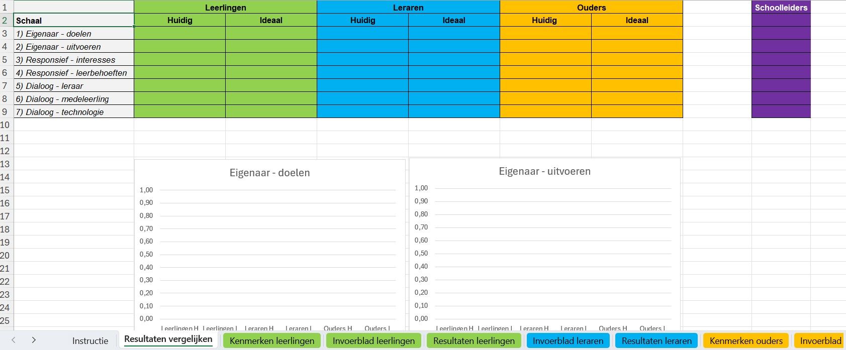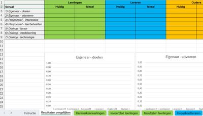 - Je kunt de vragenlijsten gebruiken om klassen te vergelijken, vooruitgang in de implementatie van eigenaarschap te volgen, te ontdekken op welk vlak zich moeilijkheden afspelen en hoe deze te verbeteren.