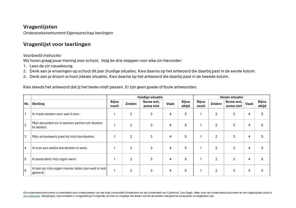 Onderzoeksinstrument Eigenaarschap leerlingen