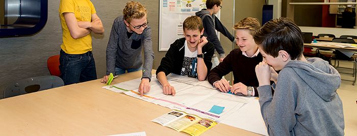 “Er wordt dus veel zelfstandigheid van de leerlingen gevraagd”, zegt Versluijs. “En dat vraagt vervolgens iets van onze docenten. We kunnen daarin veel leren van het basisonderwijs, waar ze al veel verder zijn in het begeleiden van plusklassen. Daarom gaan leerkrachten van groep 8 onze docenten daarin coachen. Daarnaast zijn we bezig met de ontwikkeling van een breder scholingsprogramma voor docenten. Een belangrijk punt, want op termijn, als we dit gaan uitrollen in de hele school, vraagt dit van steeds meer docenten een fundamenteel andere werkwijze. Dat vind ik best een spannend onderdeel. Gaat het lukken om de mensen hierin goed mee te nemen?”