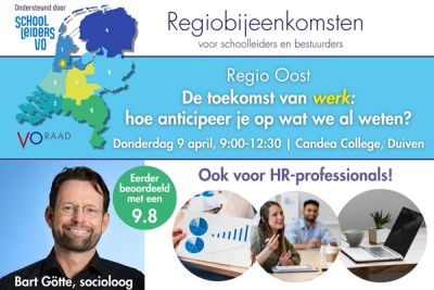 Eerder sprak Bart Götte op de regiobijeenkomsten West en Midden in najaar 2025. De deelnemers beoordeelden hem maar liefst met een 9.8 gemiddeld! Je gaat naar huis met heldere ideeën over de toekomst in theorie én praktijk, waarmee je je visie op jouw school en het onderwijs kunt optimaliseren.