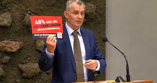 Tijdens het debat klonk een breed geluid van zorg over het verdwijnen van de onderwijskansenregeling. Kamerlid Hans Vijlbrief (D66) noemde het plan van het kabinet “broddelwerk” en riep op tot beter doordachte keuzes. Ook Kamerlid Van der Lee (GroenLinks-PvdA, foto onder) sprak zich uiten noemde het “een farce”. SGP-Kamerlid Flach begreep niet waarom het kabinet niet meebeweegt: “het kabinet zíét toch dat er geen meerderheid is voor de bezuiniging op de onderwijskansenregeling?!”.