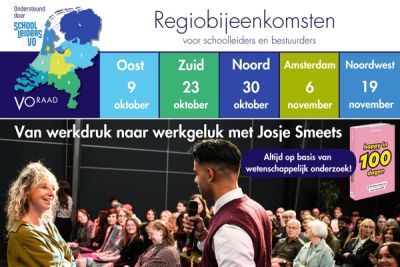 Na een zeer succesvolle keynote op het Zomer-event van Schoolleiders VO in 2024 hebben we gelukspsycholoog Josje Smeets uitgenodigd op vijf van de acht regiobijeenkomsten in oktober en november 2025!