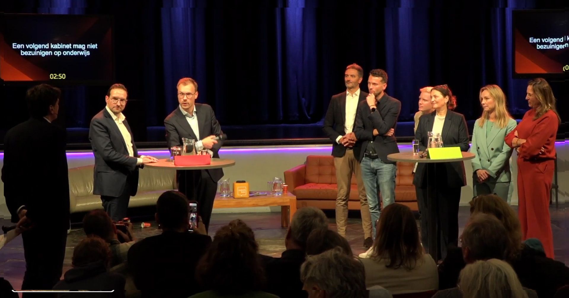 Een pittige discussie ontstond ook al vroeg in het debat toen het over later selecteren ging. Ondanks dat er meermaals onderzoeken werden aangehaald waaruit blijkt dat later selecteren een positief verschil maakt voor leerlingen, waren niet alle partijen te overtuigen van de noodzaak hiervan. André Poortman van het CDA stond welwillend tegenover het later selecteren maar het CDA kiest er nu niet voor omdat het heel veel geld kost en druk legt op de personeelscapaciteit. Kandidaat-kamerleden Marjolein Moorman (GL/PvdA) en Inge Vossen-Van Beers (Volt) benadrukten dat kinderen langer de tijd moeten krijgen om hun talenten te ontdekken en te ontwikkelen met minder stress. Moorman: 'Maak van groep 8-leraren geen toekomstvoorspellers.' Een leraar in het publiek pleitte voor het model van de internationale scholen in Nederland die pas selecteren op 14-jarige leeftijd.
