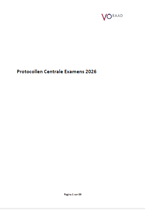 De protocollen centraal examen 2026 zijn gepubliceerd. Ook is de adviestabel 'Opsturen examenwerk naar eerste en tweede corrector' beschikbaar. In de protocollen staan de wettelijke voorschriften voor de eindexamens uitgewerkt. Met deze protocollen wil de VO-raad de schoolleiding, examensecretarissen en docenten een hulpmiddel in handen geven om de voorbereiding, afname en beoordeling van de examens zo optimaal mogelijk te laten verlopen.