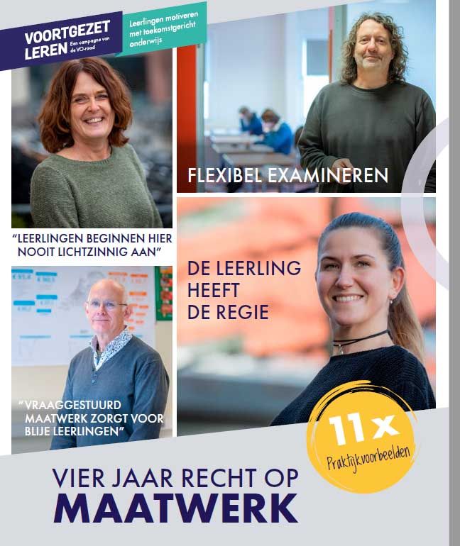 Maatwerk, waarbij het onderwijs wordt toegespitst op individuele leerlingen en hun interesses, talenten en ontwikkeltempo, wordt steeds wijdverbreider in de sector. Scholen willen zo recht doen aan de verschillen tussen leerlingen in een klas, leerlingen extra uitdagen en hen de kans geven zich optimaal te ontwikkelen. Om maatwerk te kunnen bieden, is (verdere) flexibilisering van het onderwijssysteem nodig. De VO-raad pleit in dit kader onder meer ook voor een maatwerkdiploma.