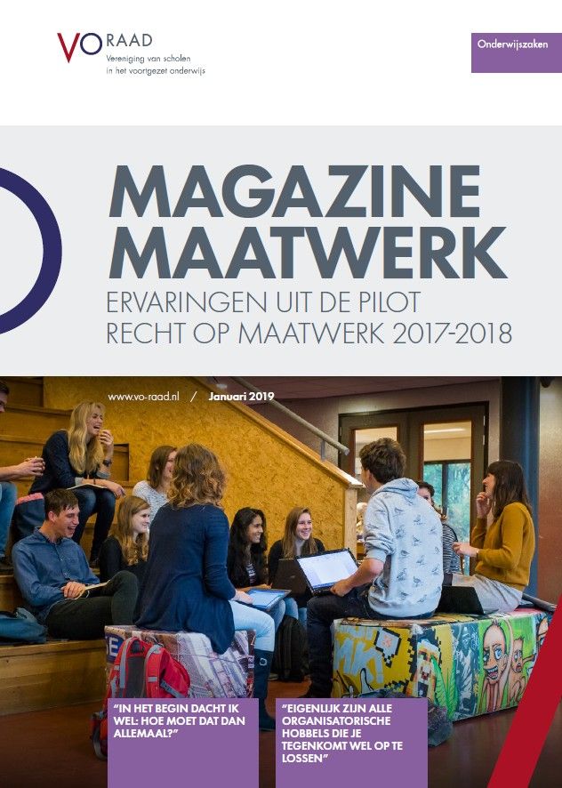 In 2017 en 2018 zijn 30 vo-scholen binnen een pilot elk op eigen wijze aan de slag gegaan met maatwerk. Met deze pilot wilden de VO-raad, het ministerie van OCW en LAKS onderzoeken hoe een ‘recht op maatwerk’ van leerlingen in de praktijk kan worden vormgegeven en wat het leerlingen oplevert. De resultaten van de pilot zijn opgenomen in het magazine 'Ervaringen uit de pilot Recht op maatwerk' en kunnen als inspiratie dienen voor andere scholen. Lees daarnaast de verhalen van 11 scholen die na de pilot verder gingen op het maatwerkpad.