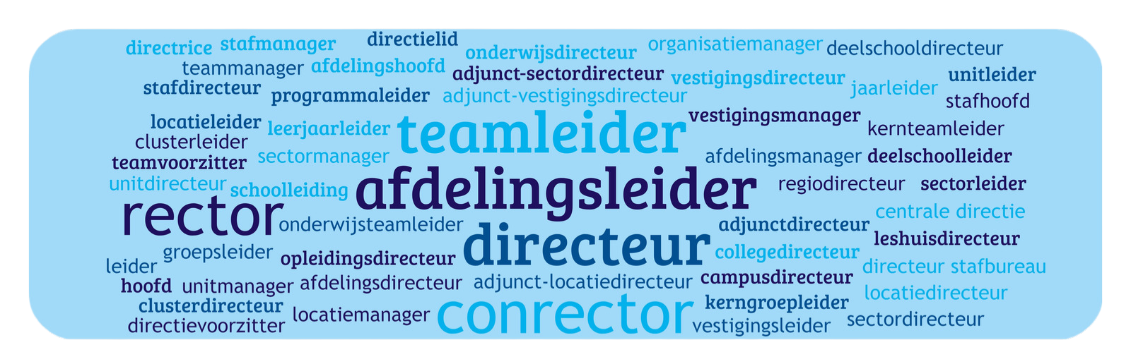 Er zijn verschillende benamingen op scholen voor mensen die leidinggeven. Bijvoorbeeld: